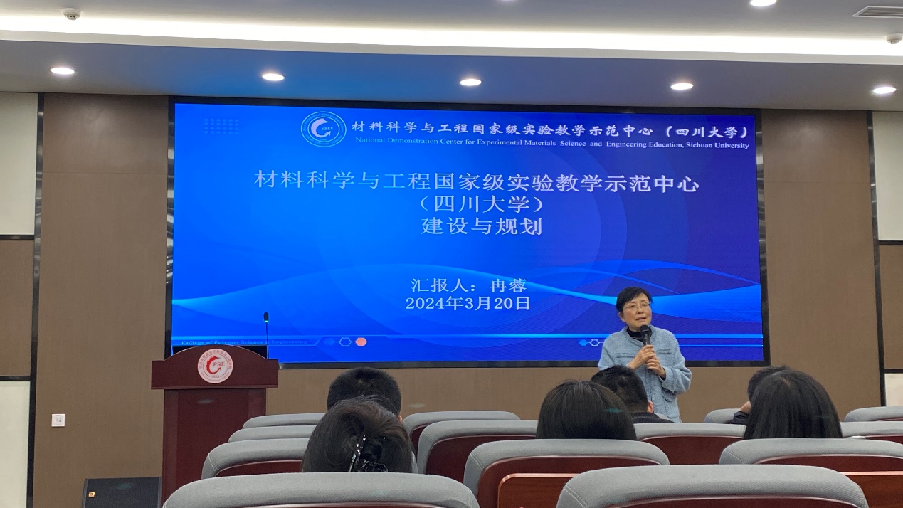 会议伊始,材料科学与工程国家级实验教学示范中心副主任冉蓉教授首先对参会老师表示了热烈的欢迎,随后以“材料科学与工程国家级实验教学示范中心建设与规划”为主题,介绍了示范中心的建设历程、发展概况及未来规划,并分享了示范中心在实验教学改革、师资管理、教学评估等方面的相关成果与成效。