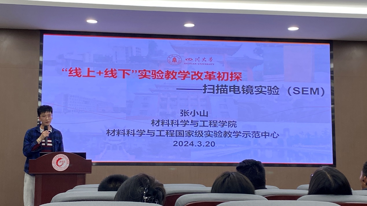 示范中心张小山老师以“‘线上+线下’实验教学初改革——扫描电镜实验(SEM)”为题,分享了如何从培养学生创新能力的角度进行课程改革方案与改革细节,内容丰富、观点新颖。