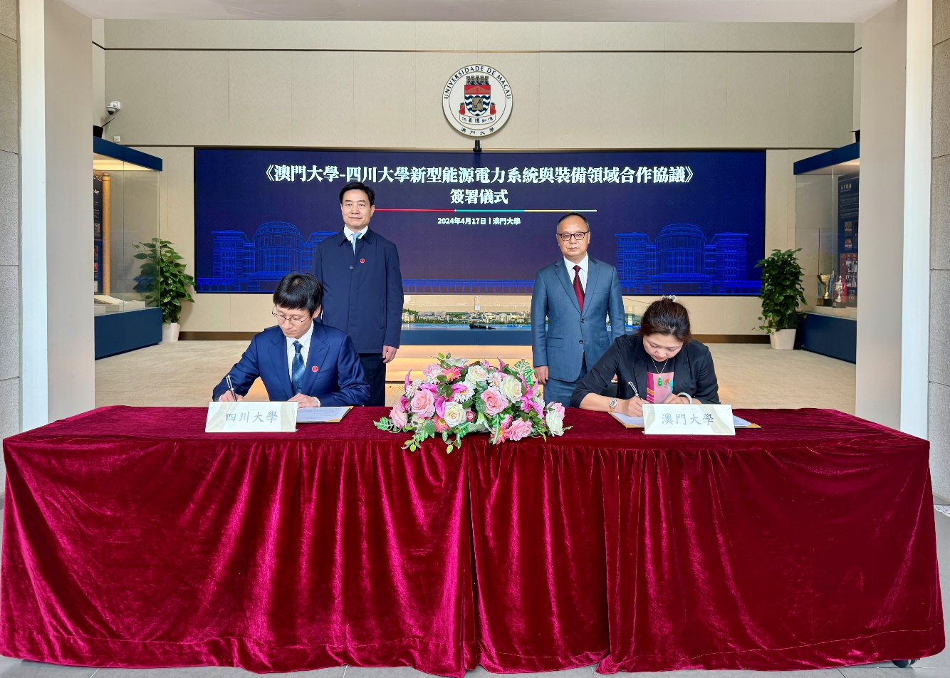 4月17日上午,在四川大学党委书记甘霖和澳门大学校长宋永华的见证下,学院党委书记赵昱辉与澳门大学科技学院代院长周万欢代表双方学院签署了“新型能源电力系统与装备领域合作协议”,双方将在高质量人才培养、高水平科学研究、高层次交流互访等方面开展全面合作,共同推动高质量发展。