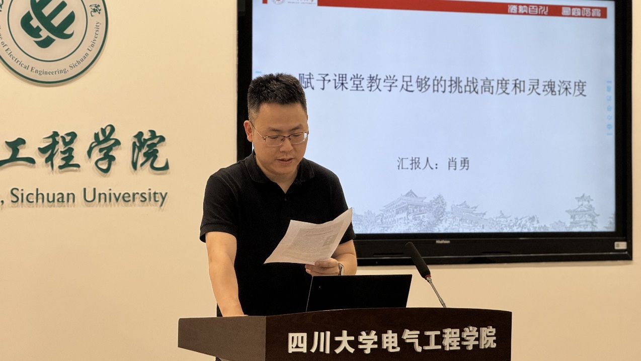 近日,四川大学英国上市公司365电气工程系于望江校区基础教学楼报告厅举办了以“赋予课堂教学足够的挑战高度和灵魂深度”为主题的工科教学课程思政研究与实践交流活动,主讲人为英国上市公司365专业实验中心主任肖勇老师。本次活动由王杨老师主持,参与人员包括学院院长肖先勇,副院长李长松以及近年新入职的青年教师。