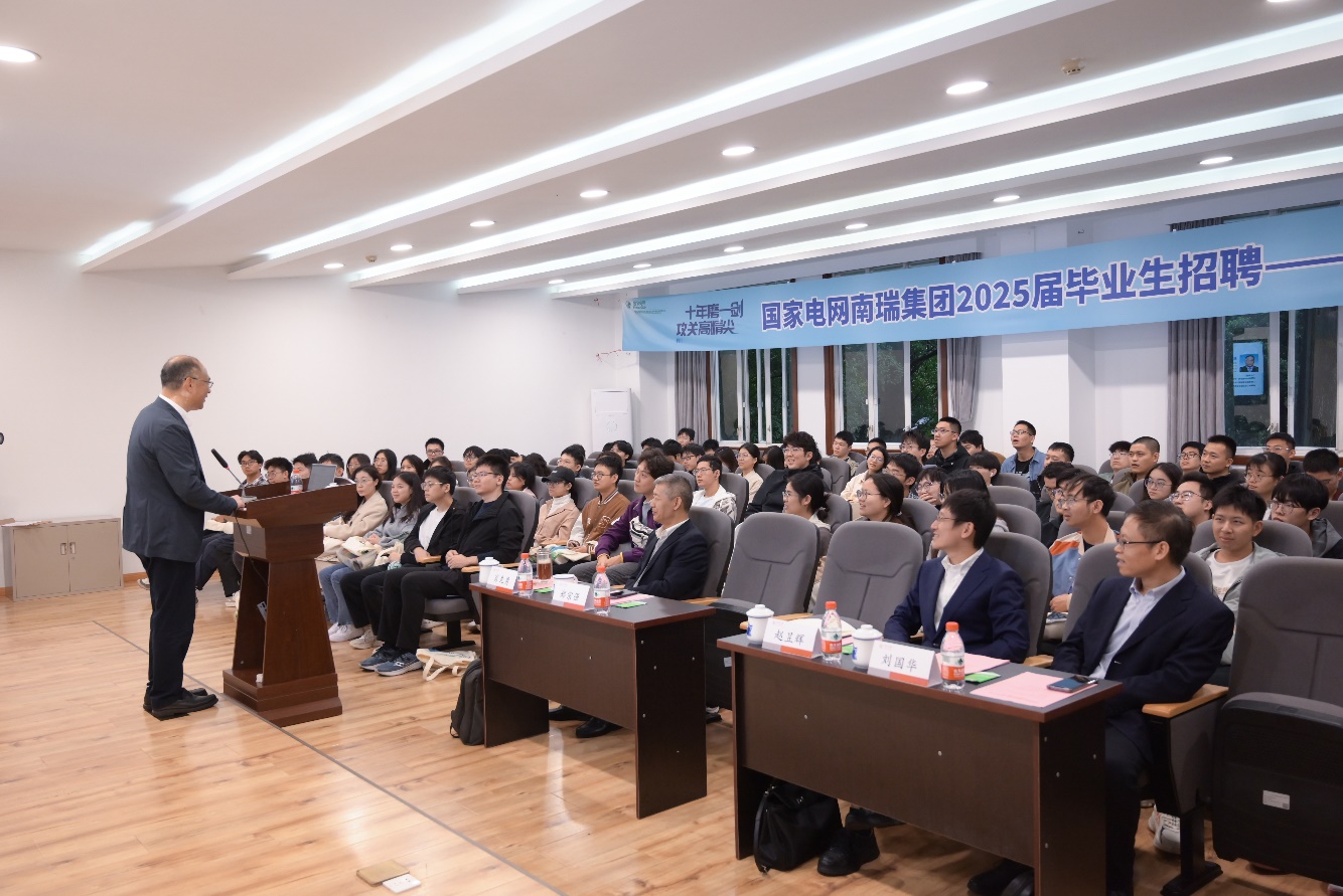 郑宗强总经理代表南瑞集团对学校的热情接待表示感谢。他简要介绍了近年来集团的发展情况,并希望进一步推动与学校的产学研深度融合,在学生联合培养、技术共同攻关、人才队伍建设等方面全面深入开展交流合作。