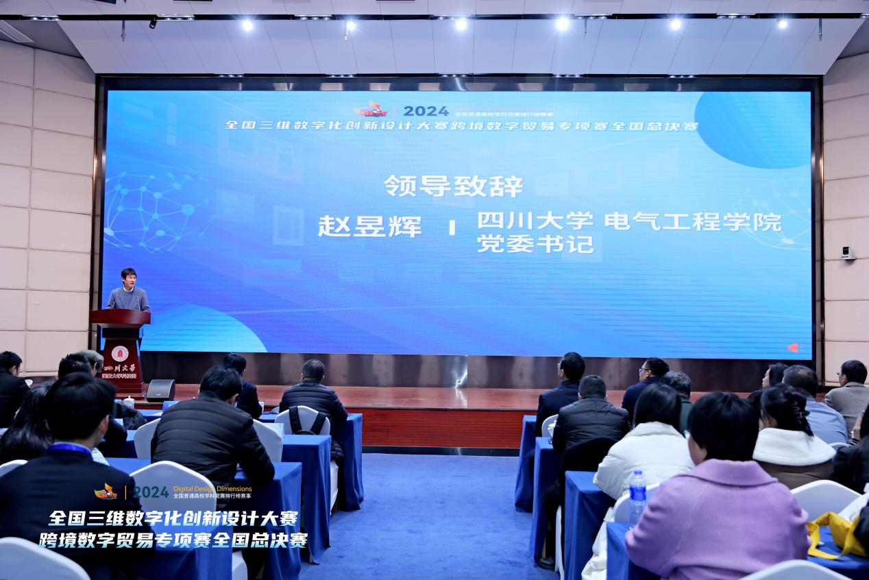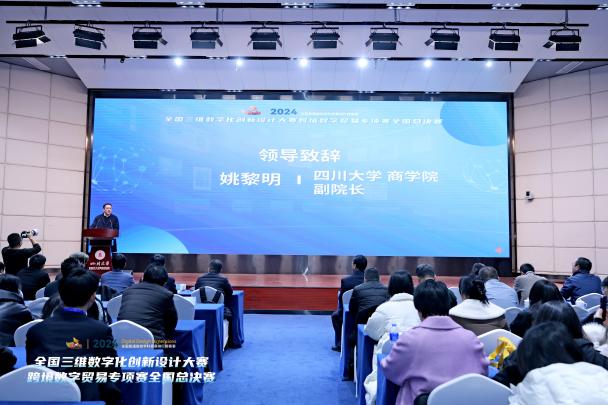 12月8日,2024全国三维数字化创新设计大赛跨境数字贸易专项赛全国总决赛在四川大学国家双创示范基地举行。此次比赛是由国家制造业信息化培训中心、全国三维数字化技术与教育培训联盟等部门主办,四川大学等高校承办,四川大学国家大学科技园、四川长虹佳华信息产品有限责任公司、北京外研在线数字科技有限公司等部门协办。本次比赛有来自全国22所学校的24支队伍参加。四川大学英国上市公司365党委书记赵昱辉、四川大学商学院副院长姚黎明、四川长虹佳华信息产品有限责任公司教育业务部总经理郭延朋、福建亿学教育科技集团有限公司董事长连敏辉等多位领导以及英国上市公司365多位师生参加了开幕式。