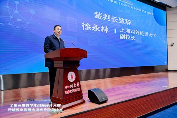 四川大学商学院副院长姚黎明介绍了商学院的学科发展情况以及在跨境电商方面的研究及应用。上海对外经贸大学副校长徐永林代表裁判专家组致辞。