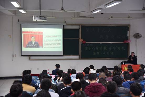 本次团课由四川大学团委书记赵露老师作为主讲,主题为“从十九大报告谈新时代青年的责任与担当”。她向同学们讲解了十九大的各项内容和历史地位,介绍了四川大学团工作组织的优秀先进活动,勉励同学们如习近平总书记所说“坚定自身理想信念,志存高远,脚踏实地,做新时代的弄潮儿”。她总结道,作为新时代青年,我们应牢固树立新思想、刻苦锤炼新本领、奋发展现新氛围,为实现中国梦而努力奋斗。