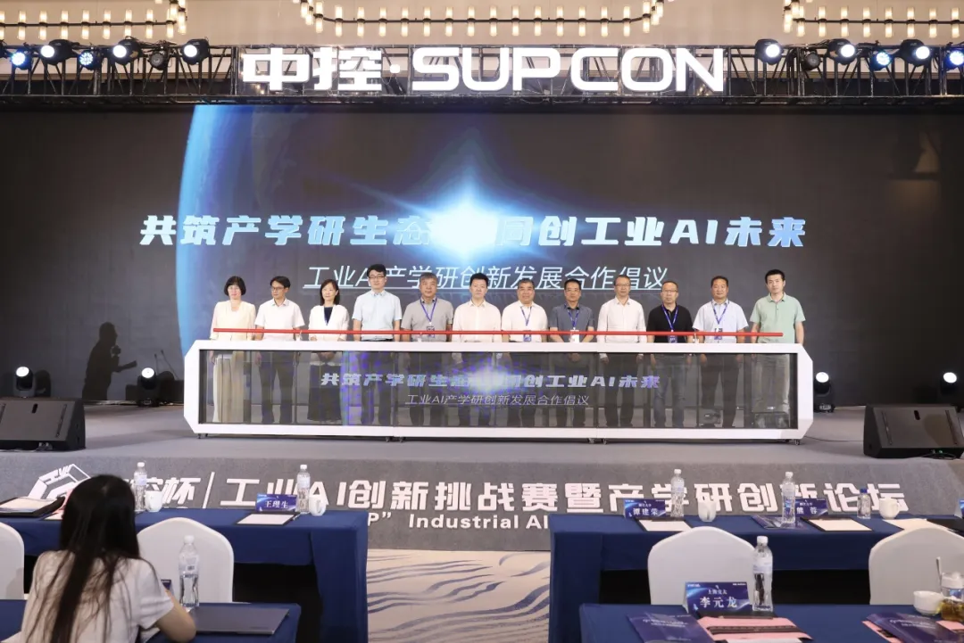 当日下午,由中国仪器仪表学会智能工厂专业委员会、中控技术联合主办的“工业AI产学研创新论坛”上,作为共同倡议者,学院与中控技术和兄弟高校一同,现场发布“共筑产学研生态,同创工业AI未来——工业AI产学研协同创新合作倡议”。