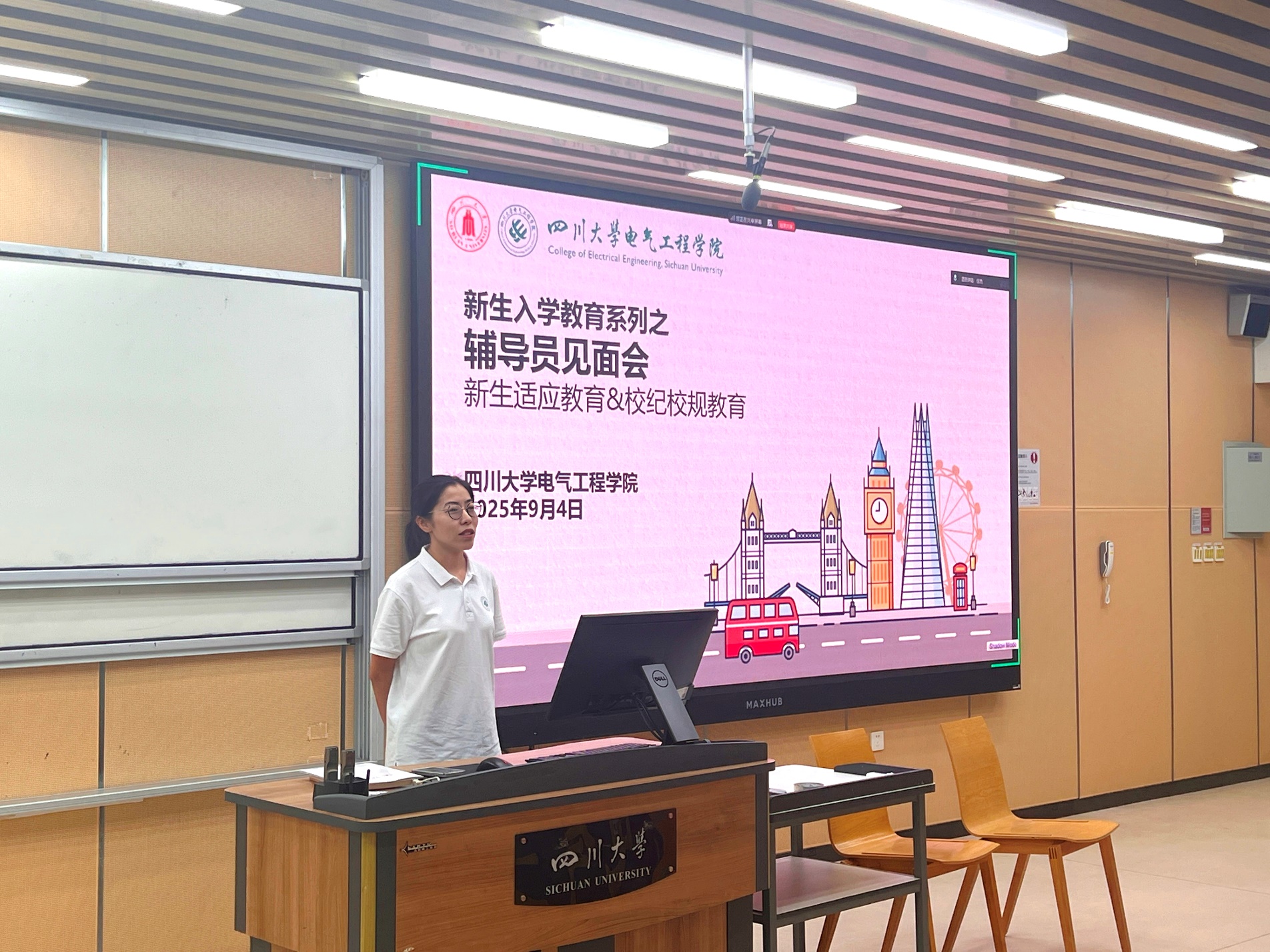 9月4日至9月16日,电气工程学院顺利开展了2025级新生入学教育周系列活动。本次教育周内容丰富、形式多样,先后开展了校纪校规安全教育暨辅导员见面会、团学骨干培训会、心理健康教育交流会、新生家长线上见面会、新生资助政策宣讲会、校史文化学习主题活动及网络诈骗防范宣讲活动等。通过开展系统性的入学教育,学院旨在帮助新生快速适应大学环境,深入了解学校的教学管理体系,同时引导他们树立远大志向,传承川大精神,为大学生活奠定坚实基础。