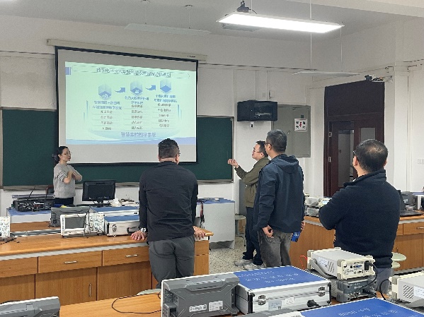 在实地参观中,印月老师重点介绍了电子技术实验智慧课程的建设思路,并现场演示实验课程的智慧化教学流程——AI辅助实验预习、实时实验数据分析、个性化学习资源推荐等。直观的演示让在场老师切身体会到智慧化手段不仅能有效激发学生的学习主动性,还能助力培养学生的工程思维与解决复杂问题能力。