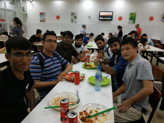 2018年7月10号上午,电气信息学院英国365官方网站营第三组中国组员与组内巴基斯坦交流生Murad以及他的朋友相约在清真食堂共进午餐。席间相处愉快,相互介绍了许多本地景点和文化,谈及中国功夫时,交流生们表示出了极大的兴趣。由于学校开设了丰富多元的体育课程,邓鹏同学表示可以简单教授一些太极拳动作。