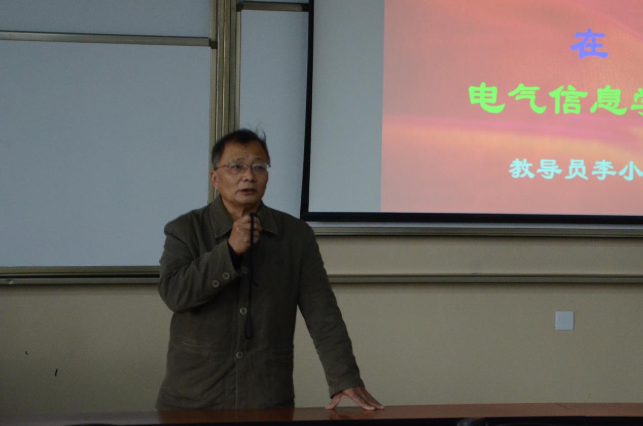 李小根老师从教导员职责讲起,希望与同学们多多沟通交流,并以玉石为例告诫同学在大学负重前行,成器成才。为了深化同学们对自身专业的认识,李小根老师从相机等日常设备入手,介绍北斗卫星等高端设备,深入浅出地描绘出专业蓝图。