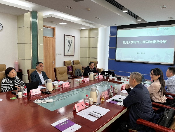 我院一行人首先参观了新型电力系统运行与控制全国重点实验室,胡伟教授详细介绍了实验室创建和发展历程,目前正在开展的科研工作,并一同观看了科研成果展示宣传片。在随后举行的座谈会上,陆超教授、朱桂萍教授介绍了清华大学电机系近年来在科学研究与人才培养方面的发展举措与突出成绩。肖先勇院长从发展历史、学科情况、人才培养等方面介绍了川大电气的总体情况。最后,两方围绕研究生联合培养、科研项目申报等开展了深层次探讨。