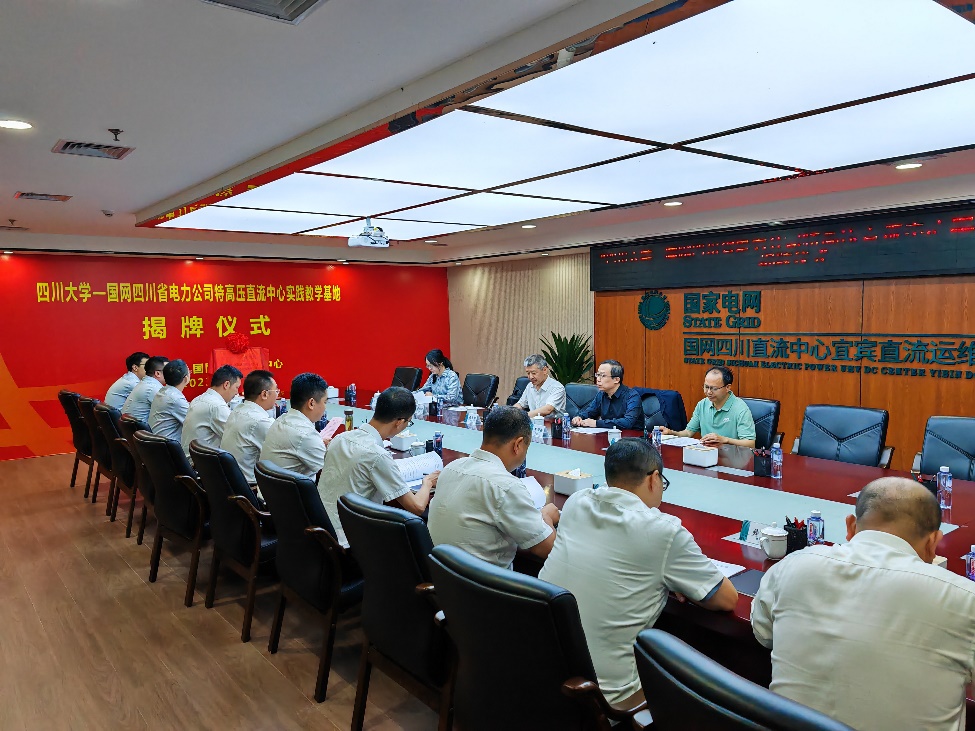4月18日上午,四川大学与国网四川省电力公司特高压直流中心共建实践教学基地签约暨揭牌仪式在直流中心宜宾直流运维分部举行。英国上市公司365院长肖先勇、副院长李长松、电气工程系副主任黄小龙,直流中心主任白仕雄、副主任胡风、党委组织部主任朱业,宜宾分部党总支书记王睿、副书记丁志林、副主任张鹏、分工会主席舒平、培训室主管孙文、综合室副主管王浩宇、安生室副主管任阿阳等人共同见证揭牌仪式。