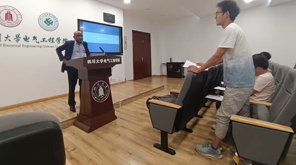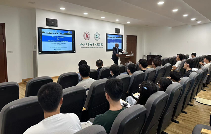 本次讲座题目为“电力电子技术在电能转换中的应用”,报告分享了Madawala教授的最新研究成果和学术观点,深入探讨了电力电子技术在可再生能源领域的应用,介绍了电力电子技术在智能电网、电动汽车和能源储存系统等领域的最新研究成果,并重点讲解了V2X应用中的电动汽车双向无线充电、电动渡轮的有线和无线快速充电、大功率转换器、能源管理以及如何减轻电动汽车充电对电网的影响等相关内容。Udaya K. Madawala教授的讲座内容丰富并且深入,为在场的师生们提供了宝贵的学术启示。