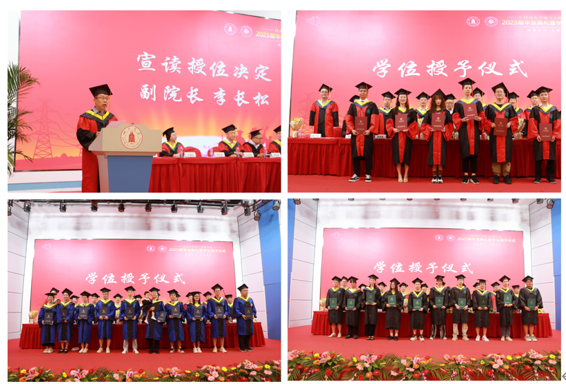 李长松副院长宣读了学校学位评定委员会授位决定。随后,举行了庄重的学位授予仪式,由参会领导和导师代表依次为2023届博士、硕士、本科毕业生拨穗授位。