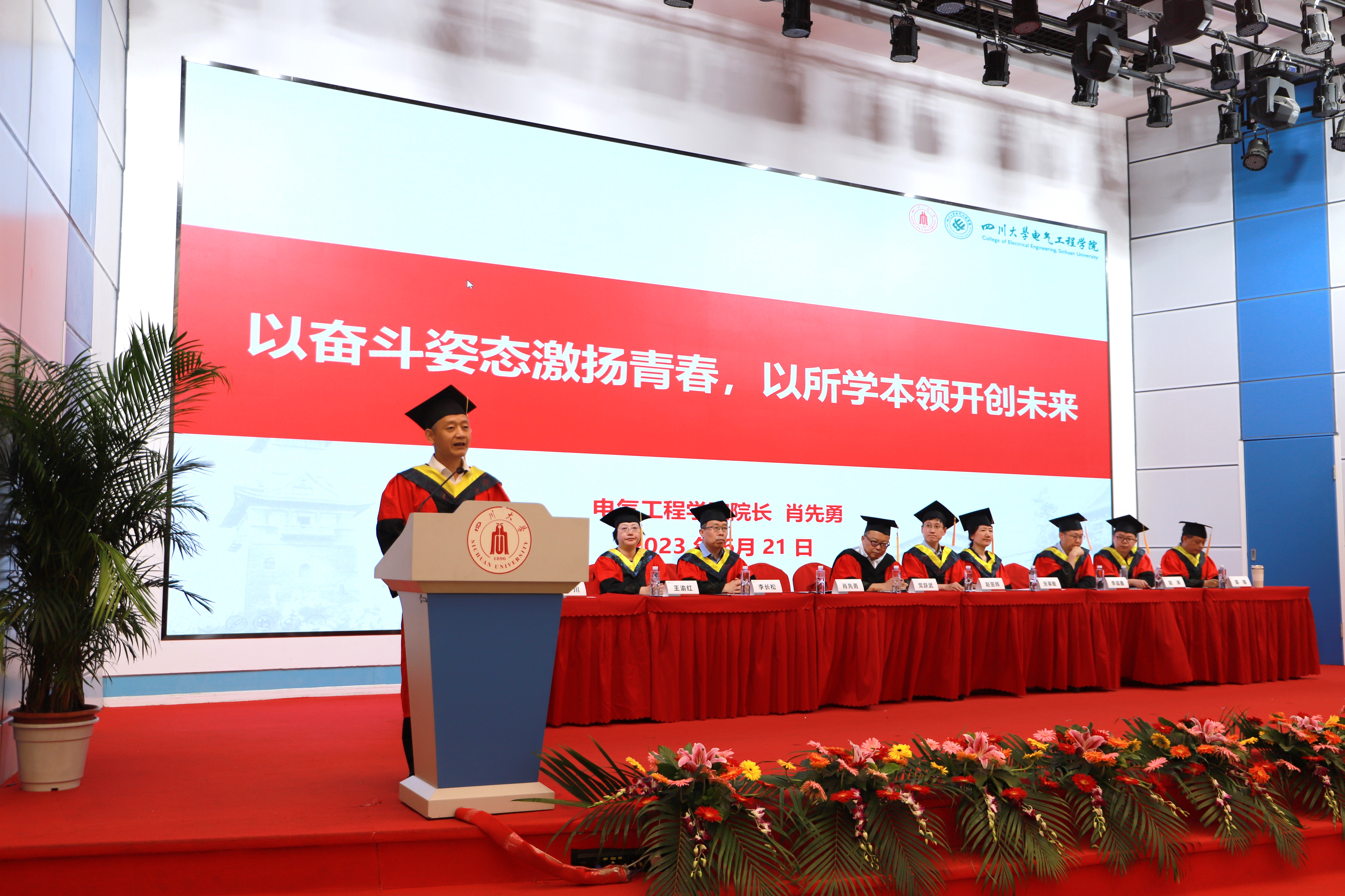 6月21日下午,四川大学英国上市公司3652023届毕业典礼暨学位授予仪式在望江校区汇文楼演播厅隆重举行。四川大学教务处处长党跃武,英国上市公司365党委书记赵昱辉、院长肖先勇,副书记张英敏、戴婷婷,副院长李长松、李成鑫,电气工程系主任王渝红、博导代表何川,自动化系主任赵涛、博导代表苗强,以及2023届毕业生和学生家长代表参加了毕业典礼。典礼由戴婷婷副书记主持。