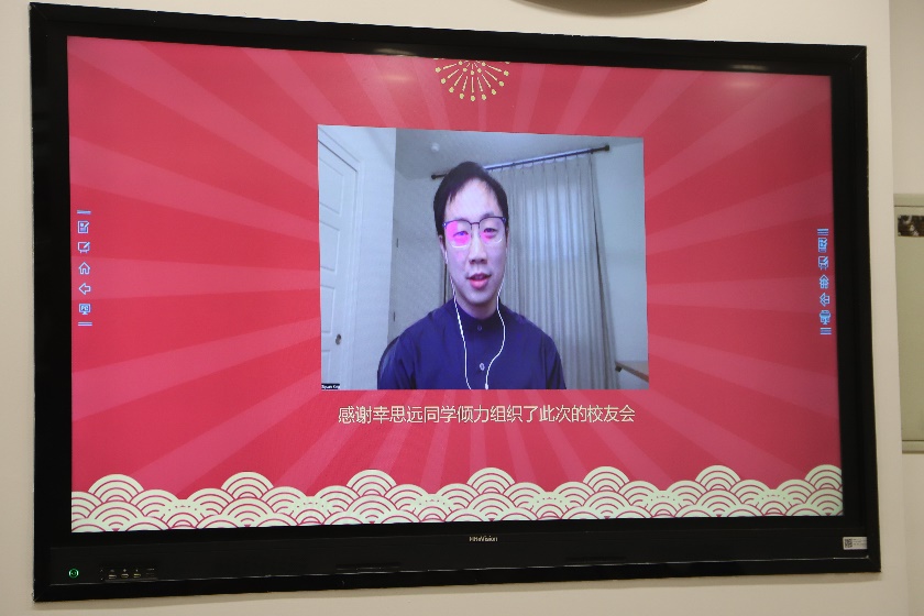本次校友会的发起人幸思远同学也从大洋彼岸发来了视频问候。他表示,很高兴能够与大家再次见面,虽然不能抵达现场,但是能够为大家提供一个这样的机会同样感到很开心,希望同学们能够尽情享受这个重聚的时光。