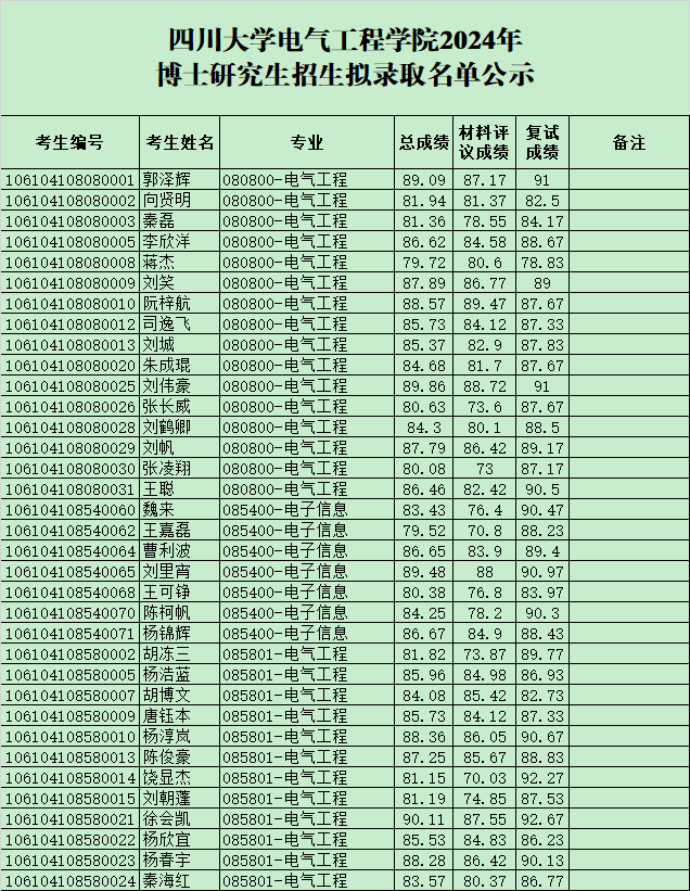 四川大学英国上市公司3652024年博士研究生招生拟录取名单公示