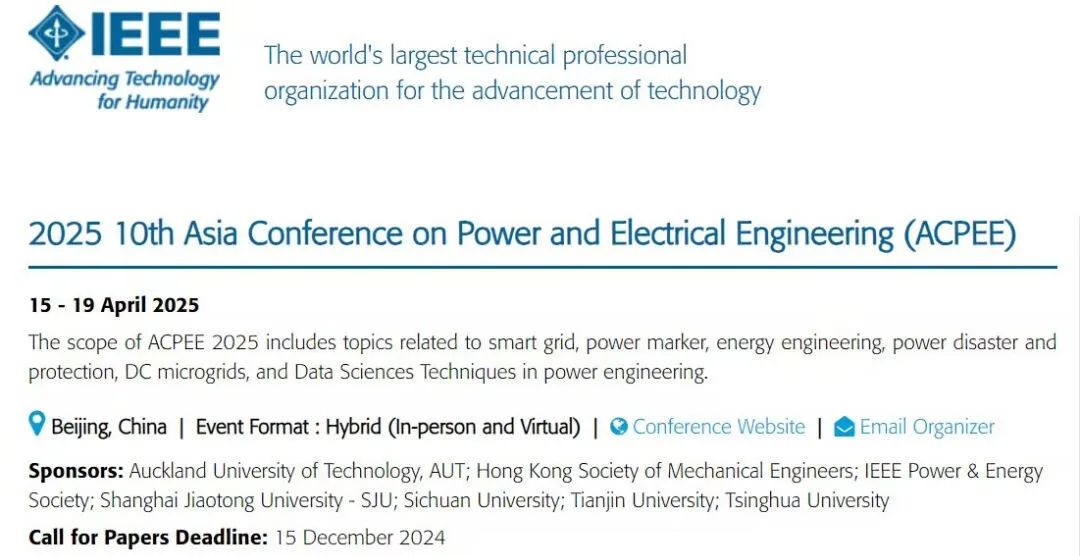 ACPEE 2025已被列入IEEE会议列表!