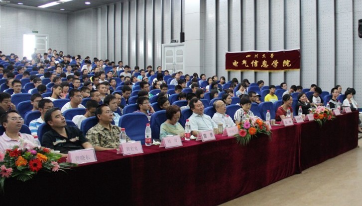 9月13日下午2:30,四川大学电气信息学院2012级新生开学典礼在江安校区水上报告厅隆重举行。四川大学电气信息学院院长刘俊勇教授,副院长吕林教授、雷勇教授,党委副书记邱晓燕教授、韩芳老师,四川大学教导员徐赐宁教授,电气信息学院各系中心主任和12级辅导员老师参加了此次典礼。开学典礼由电气信息学院党委副书记韩芳老师主持进行。