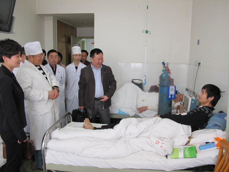 刘俊勇院长于2011年4月21日下午在党委副书记韩芳、学院办公室主任曾立渊的陪同下,前往成都市肛肠专科医院看望并慰问了身患肛周原始神经外胚层瘤的我学院2010级电气大类本科生何兴全。同行的还有学院办公室李志良以及何兴全的辅导员陈虹宇。