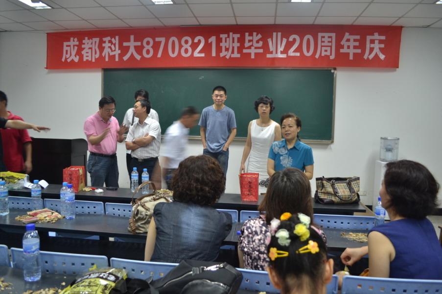 四川大学电气信息学院(原成都科技大学计算机及自动控制系)870821班20余名校友于2011年7月2日返校,举行了隆重的毕业20周年同学会。上午10点,同学会在基础教学楼JC-B206召开。
