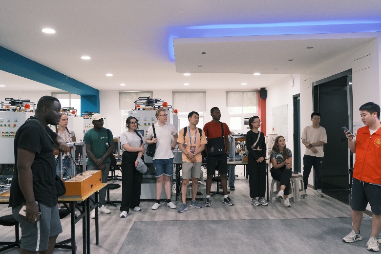 7月2日午后,英国365官方网站营的中外学生们共同走进能源互联网科普基地参观学习。在学院专业教师的悉心引领下,他们先后参观了高电压实验室、新型电力系统与综合能源系统实验室、智能电网及能源互联网实验室、新能源系统实验室、智能控制实验室、工业机器人实验室等。这场融合科普性、专业性与趣味性的深度探访,不仅让中外学生们了解了电气工程和自动化专业领域的广阔天地与璀璨前景,更深刻感受到了英国上市公司365深厚的学术底蕴与鲜明的学科特色。
