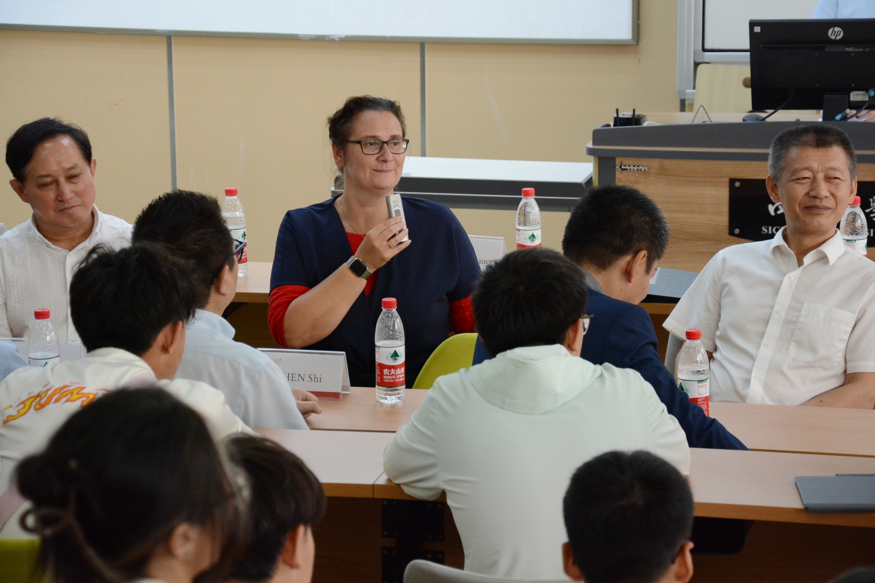 在互动交流环节,学生们踊跃用德语和英语提问,问题涵盖如何更好地利用在德国的学习时间实现学术和个人成长、赴德学习生活的建议,以及学校是否提供心理健康支持等。Schattauer校长及与会嘉宾们热情回应了学生们的提问,分享了宝贵的经验,特别鼓励大家在德国学习期间积极寻求帮助与支持。