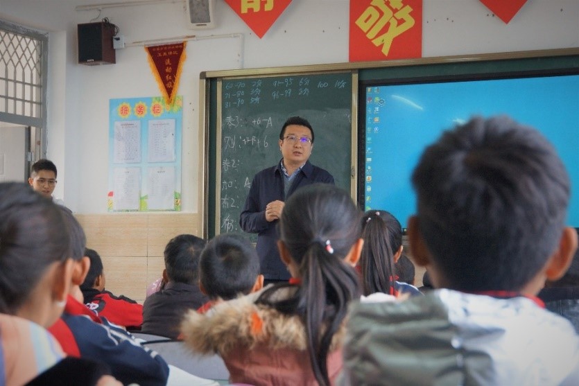 图2 陈实老师在甘洛县石海乡吉加小学校与孩子们分享交流