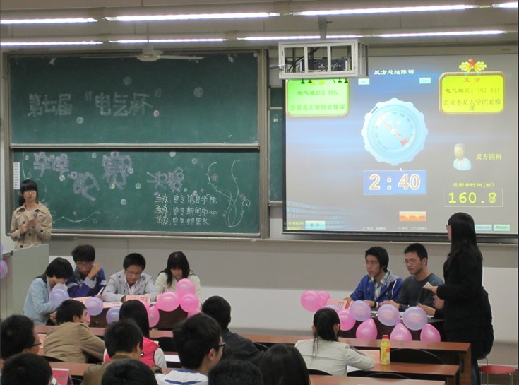 10月28日晚,由电气信息学院分团委学生会新闻中心主办的电气信息学院第七届“电气杯”辩论赛的决赛在一教B座301教室展开。
