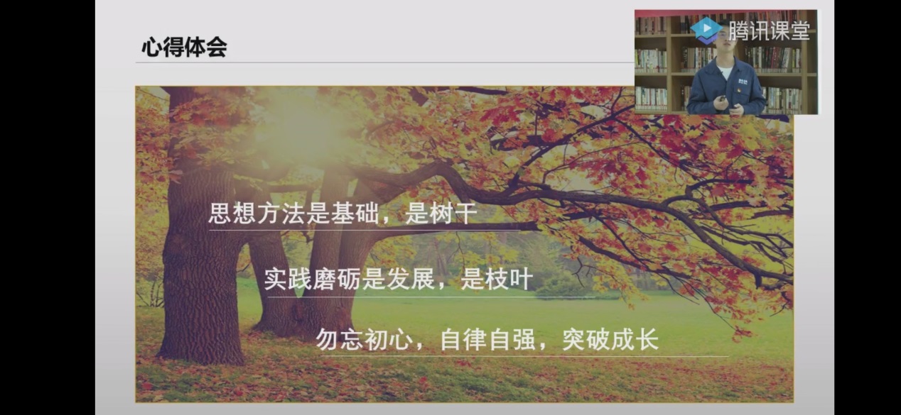 讲座最后,袁林分享了自己的心得体会。首先,思想方法是基础,是树干,他建议同学们多读方法论书籍。其次,实践磨砺是发展,是树叶,遇到困难,应该迎难而上,积极解决。最后,勿忘初心,自律自强,突破成长。坚定自己的初心,锚定目标就要坚持不懈向之努力。这也是袁林对自己未来的希望。