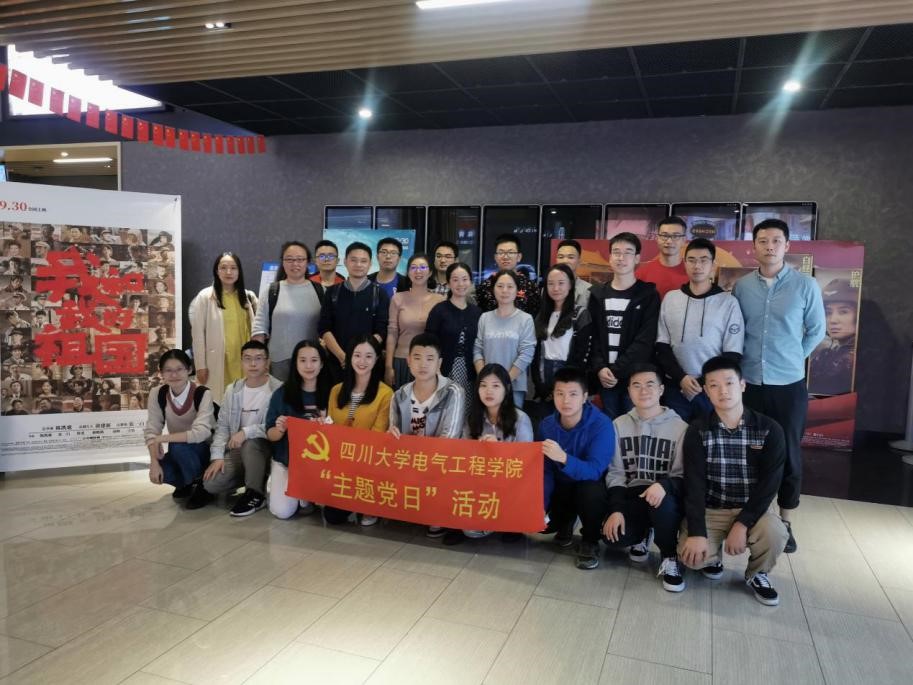 为庆祝新中国成立70周年,扎实推进“不忘初心,牢记使命”主题教育,2019年10月14日下午,四川大学英国上市公司365学生党支部组织党员师生代表观看爱国主义电影题材电影《我和我的祖国》。英国上市公司365党委副书记戴婷婷、全体专职辅导员老师及学生党员代表参加了此次活动。