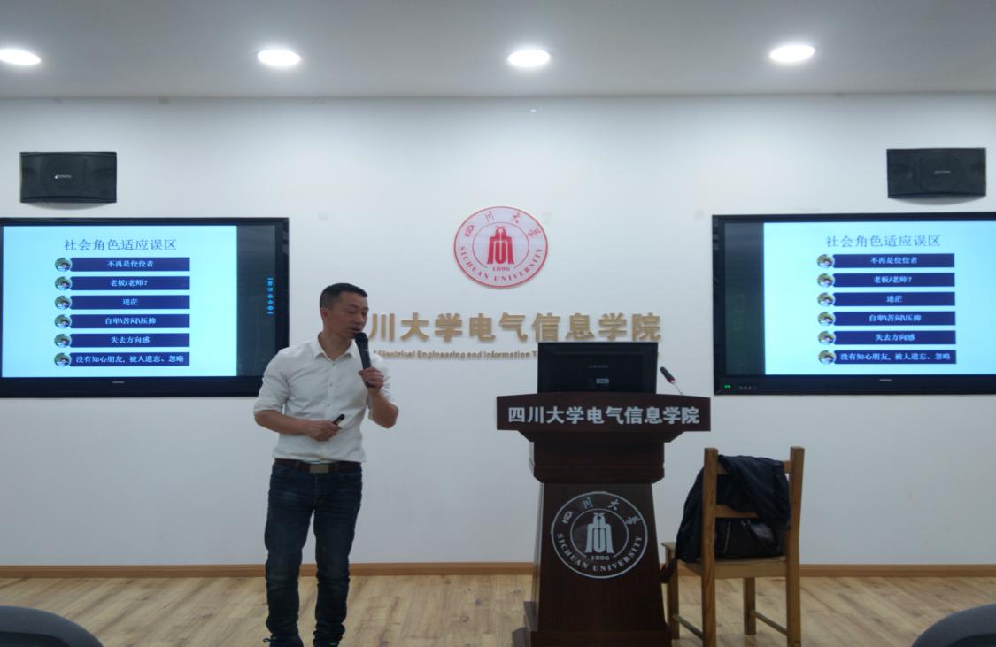 为帮助我院研一学生更好适应研究生生活,2019年4月18日下午14:00,电气信息学院于望江校区基础教学楼B座206举办以“研究生生活适应与时间规划”为主题的心理健康教育讲座。我院邀请四川大学心理健康教育中心刘昌波老师前来授课,我院部分心理联络员与一年级研究生参加了此次主题讲座。