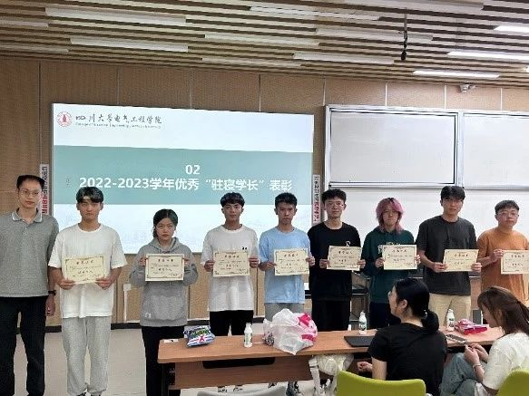 接下来,大会对2022-2023学年获评 “优秀驻寝学长”的同学进行了表彰,杨龙杰老师及2022级驻寝学长代表为其颁发了奖状和奖品。