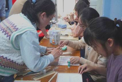 伴随着暖场音乐,主持人宣布活动开始,在场同学自由参与花灯和“月饼皂”手工制作,现场气氛活跃热烈。