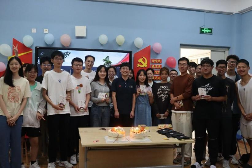 最后,赵书记向寿星们颁发了生日礼物,并送上了自己的生日祝福。赵书记表示,这是一次非常有意义的集体生日活动,不仅是祖国的74周年华诞,也是各位同学远离家乡,在新的学校,与新的朋友一起度过的第一个生日。希望大家能够在这里感受到如家一般的温暖,并为自己的未来树立新的目标,以此为始,一往无前。