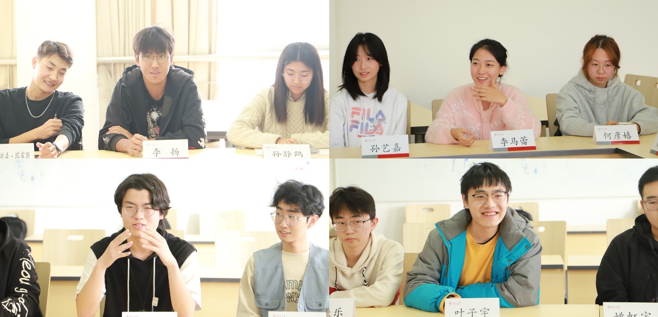 随后,参会老师与同学们进行了互动交流。针对学习和学生工作如何平衡的问题,王晓芳老师讲到,大学阶段是夯实知识基础的重要阶段,要合理分配时间,以抓好学业为本,以牢固知识体系为要。针对大寝同学间交流较少的问题,辅导员杨龙杰老师谈到,寝室文化与氛围建设十分重要,同学们可以通过更丰富的方式,增进彼此交流,深化同窗友情。针对如何拓宽视野的问题,辅导员李程老师希望同学们在大学期间利用各种机会和平台,积极争取更多开阔视野的英国365官方网站机会。