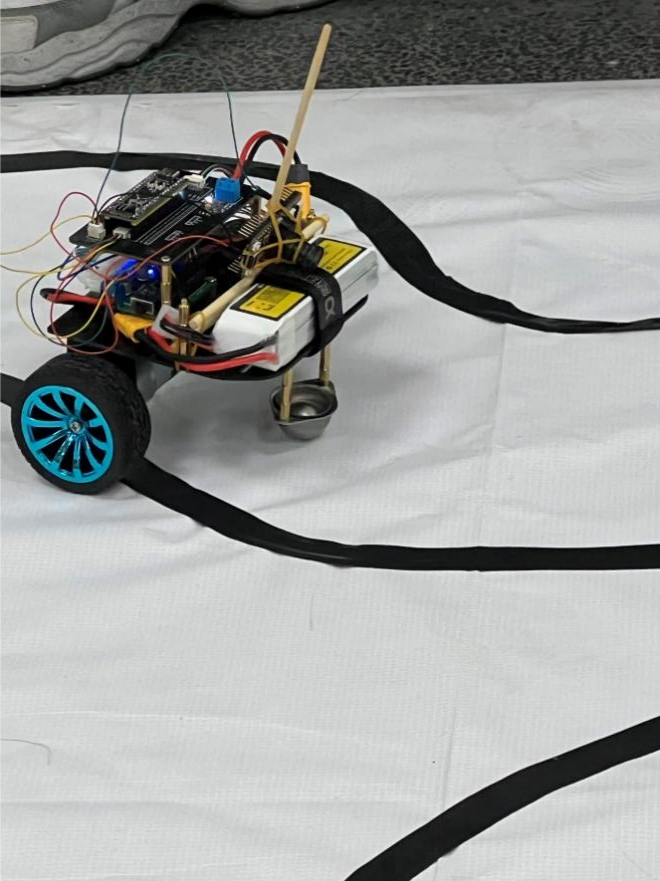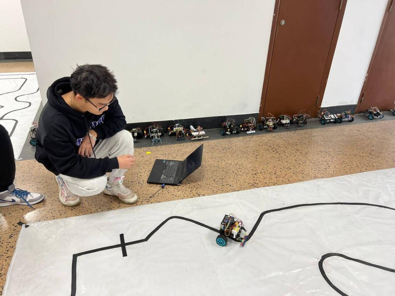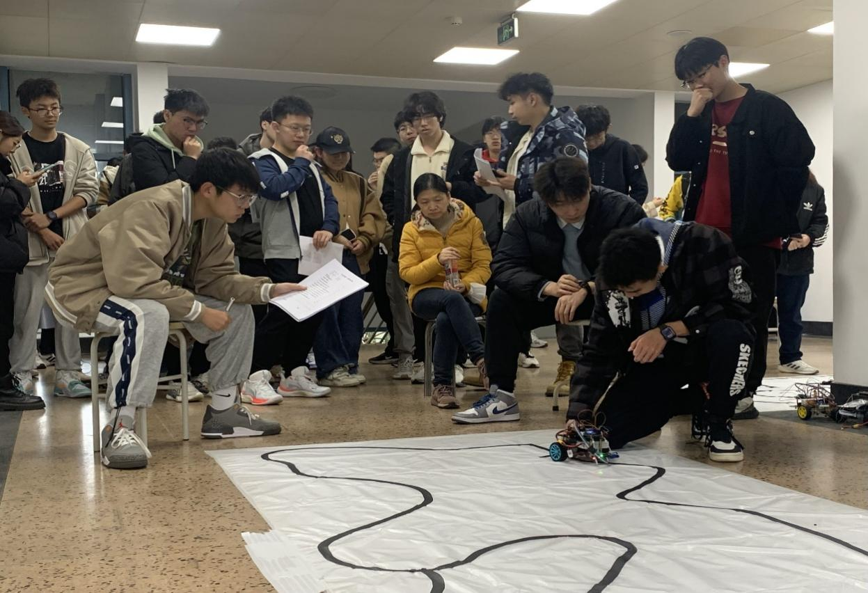 12月10日中午12:30,智能车大赛准时开始。参赛选手们按照事先安排的流程有序参加比赛。比赛要求智能小车实现通过自动循迹赛道等完成绕赛道的自动驾驶。比赛中每个小组有十分钟的比赛时间,在比赛时间内可以对车模进行烧录代码、调试等操作。