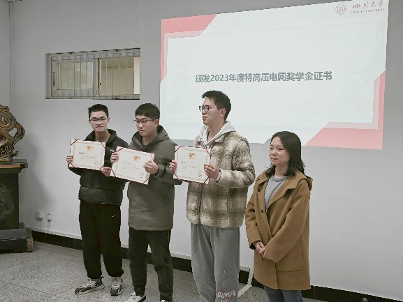 首先,戴婷婷副书记宣读了四川大学2023年度特高压电网奖学金表彰决定,并代表学院向张颢严等10位荣获本年度特高压电网奖学金的优秀学生表示祝贺。