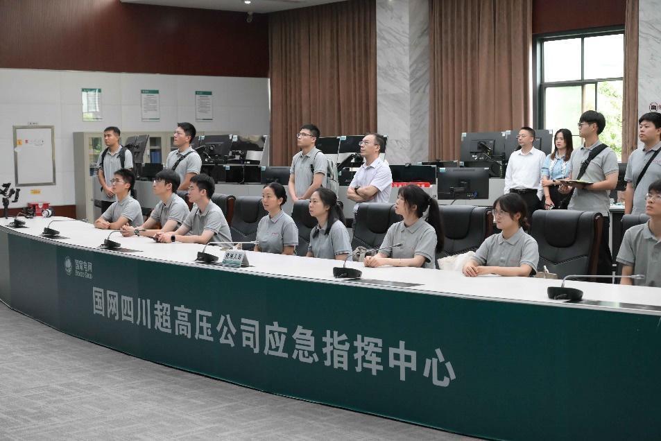 座谈交流活动结束后,实践团一行来到应急指挥中心进行参观学习。在公司专员的讲解下,同学们了解到了国网四川特高压直流中心的业务内容、特高压换流站情况、在建工程情况等具体内容。针对实际工程应用中的系列问题,同学们与在场专家进行了深入探讨,结合学科专业知识明确了工程和社会所需,为今后的学习和科研指明了方向。