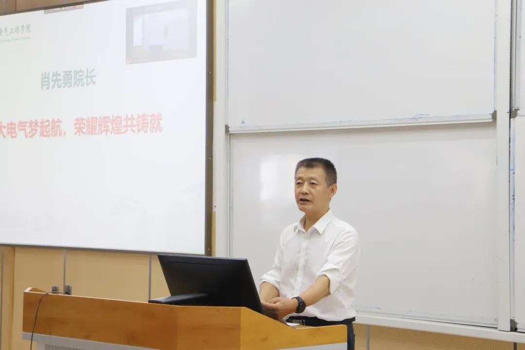 四川大学荣誉教授、加拿大工程院院士钟志勇向全体新生致以热烈欢迎和美好祝福。他强调,电气工程师正引领能源革命,向清洁高效能源体系迈进,勉励新生站在历史潮头,扬帆起航,并分享了几点期望:一是肩负使命感,推动能源转型,实现双碳目标;二是保持好奇心,勇于创新,为电气工程领域贡献力量;三是注重实践,将知识转化为现实力量;四是关注社会,积极参与社会实践和志愿活动。钟教授希望同学们在学术上追求卓越,在社会实践中展现风采,共同书写未来的辉煌篇章。