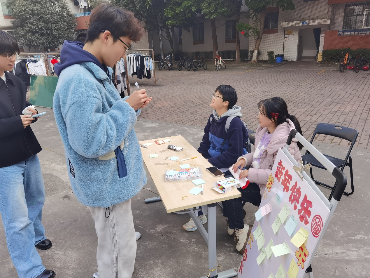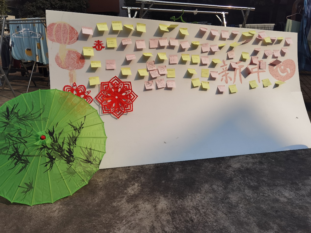 心寄锦笺,愿逐新光。在悬挂新年愿望时同学们许下心愿,期望新年拥抱美好。