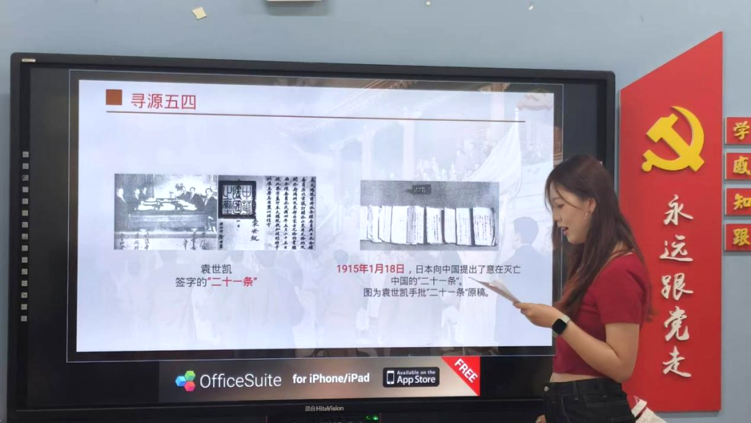 团日活动开始,全体同学齐唱团歌。随后,百川宣讲团成员杜昀瑾以“青春挺膺担当,五四赓续辉煌”为主题展开宣讲,从“寻源五四”到“五四经过”再到“感悟五四”,层层递进,让同学们随着历史的脉络深刻体悟五四精神的时代意义,激励着同学们以实际行动为民族复兴贡献青春力量。