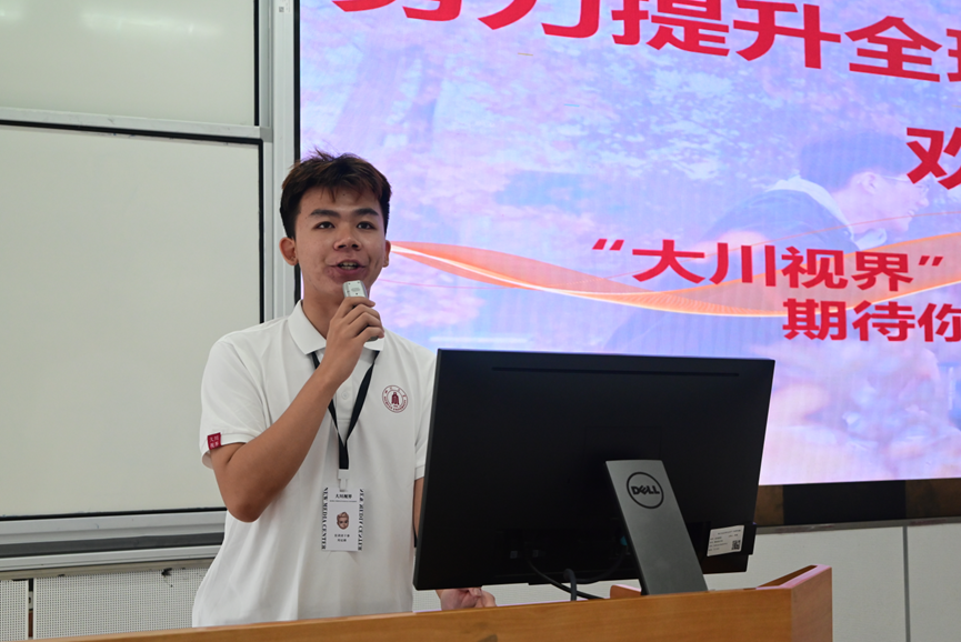 在学长经验交流环节,四川大学学工部“大川视界”项目宣讲团学长向新生介绍了学校丰富的英国365官方网站资源。他通过生动案例分享了短期访学、海外名校暑期课程、国际联合培养等项目的参与体验,强调“大川视界”对拓展全球视野、提升跨文化沟通能力的重要作用。小导师鼓励新生提前规划语言学习,积极关注国际处和学院发布的项目通知,主动争取机会“走出去”,在实践中深化对专业知识的理解,培养国际化竞争力。