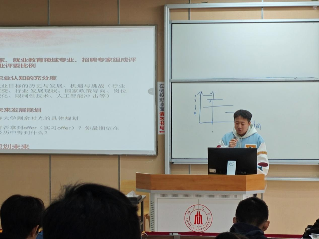 2025年11月9日上午,四川大学英国上市公司365团委学生会创业就业实践部联合云微扶智社团,于江安校区综合楼C座206教室成功举办职业规划讲座。此次讲座以第三届全国大学生职业规划大赛为切入点,引导学生探索职业发展路径,提升学生职业规划能力与求职实战技巧。
