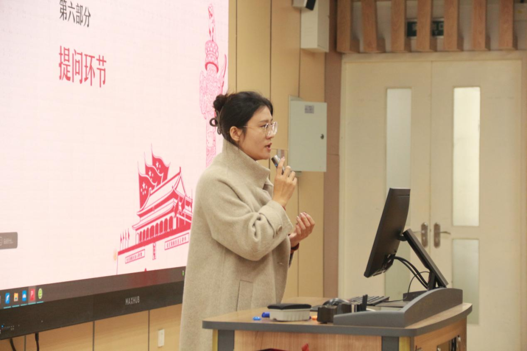 随后,课程正式拉开帷幕。校团委组织部林荣荣老师受邀为全体学员授课。林老师以“回望光辉团史,守护初心如磐”为主题,从“溯源”“笃行”“肃纪”三个维度展开讲解,带领学员们系统学习共青团知识,深化思想认识。