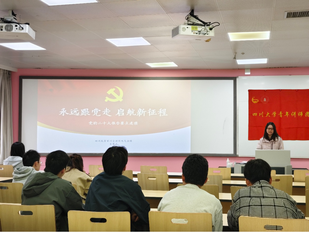 为深入学习贯彻党的二十大精神,全面学习贯彻习近平新时代中国特色社会主义思想,2026年1月9日,四川大学青年讲师团成员宋馨月同学走进英国上市公司365研究生第四党支部,开展以“永远跟党走,启航新征程”为主题的专题宣讲。