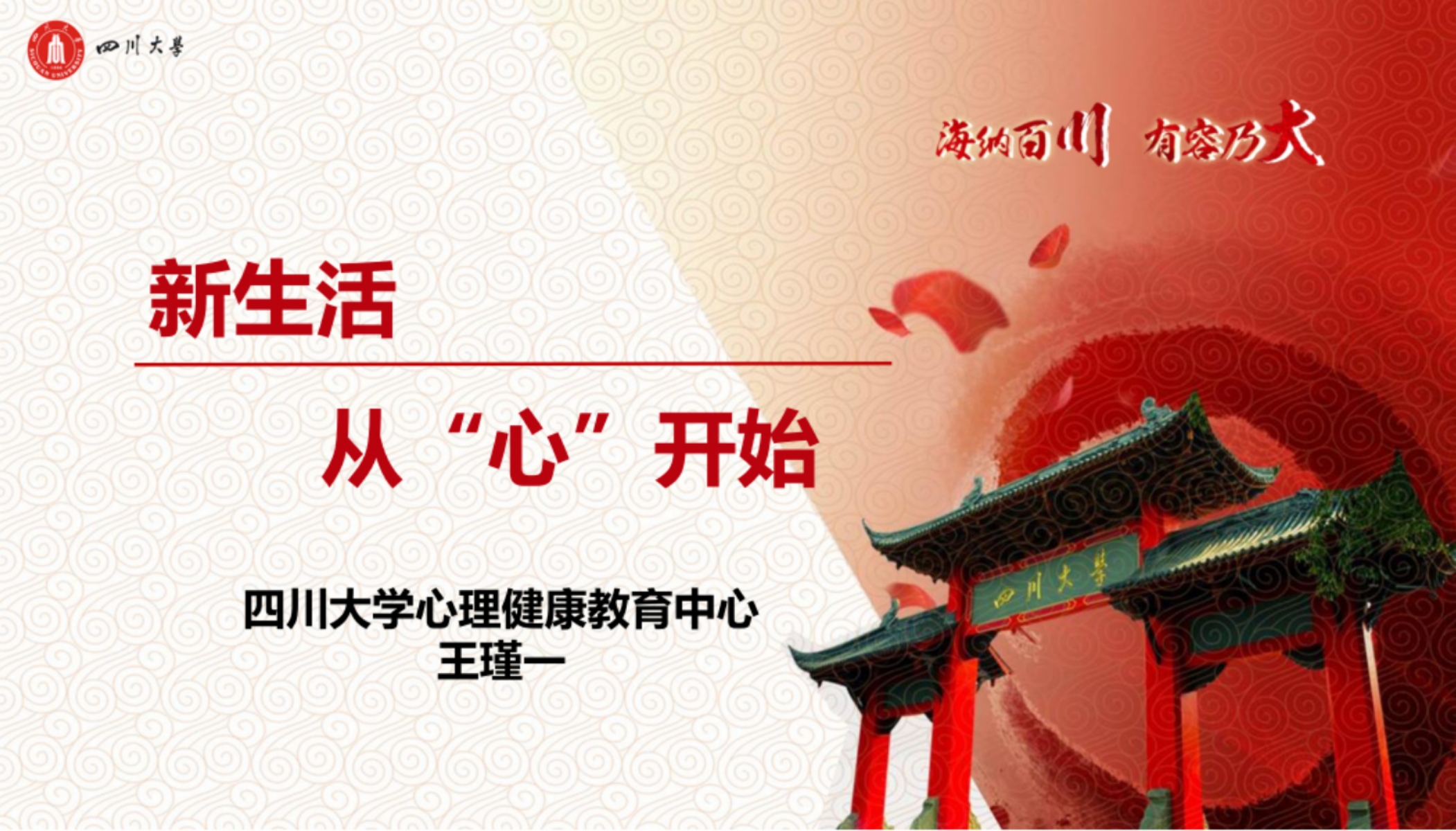 9月15日下午,23级全体本科新生在江安校区第一教学楼B座,认真倾听了心理健康教育中心王瑾一老师的“新生活,从‘心’开始”线上讲座。王老师从心情、心态和心理3个方面,指出了大学新生会面临的三大变化,并提出,大学生需要学会适应、学会学习、学会沟通、学会管理、以及学会寻求帮助。