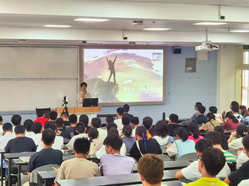 大川视界学生成长协会成员贺英洲做了“志存高远,筑梦启航”为主题的“大川视界”海外访学新生讲座,向同学们介绍了“大川视界”及其访学计划,并列举部分海外访学项目,现场同学们表现出浓厚的兴趣。