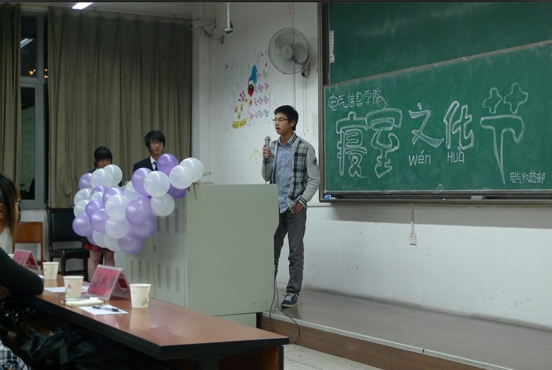 2011年11月23日,电气信息学院寝室文化节评选活动颁奖晚会在江安校区一教B座103举行,同时宣告着为期三天的电气信息学院寝室文化节圆满地落下了帷幕。电气信息学院副主席曾科,历史学院权益部部长陈贝贝,华西基础医学与法医学权益部部长宋桂文,化学学院权益部部长朱宏,电气信息学院权益部部长杨雅迪,组织部部长雷雨,公关礼仪部部长韩贵超担任此次寝室文化节评选活动的评审。