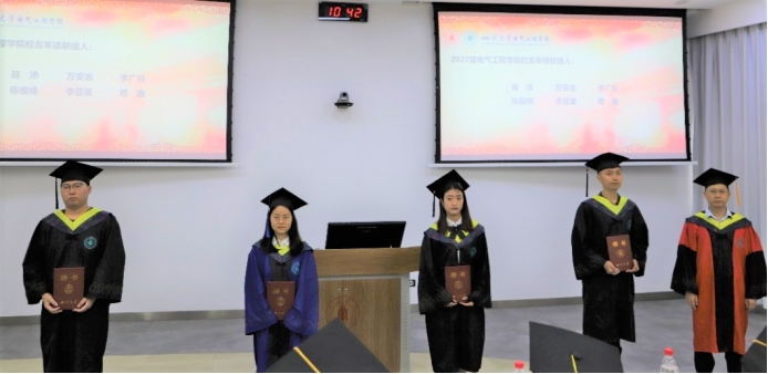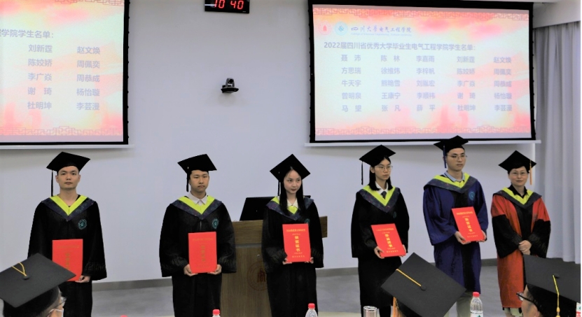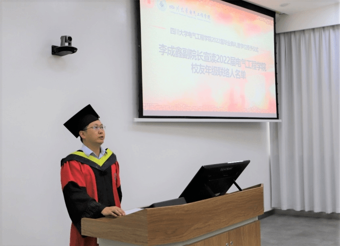 随后,2018级电气工程及其自动化卓越工程师班本科生刘新霆同学作为毕业生代表发表毕业感言,他表示拼搏是青春的底色,在学校的奋斗经历构成了同学们青春时代最美好的篇章。同时川大的“海纳百川”也激励他们不断拓宽视野,不仅要埋头苦干,更要学会拓宽思路,多学科交叉融合。最后,他代表毕业生感谢老师的授业解惑,并表示将传承川大电气人的求真和担当,不忘初心,不负时代。