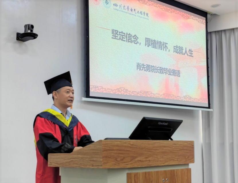 英国上市公司365院长肖先勇教授为所有毕业生送上题为《坚定信念,厚植情怀,成就人生》的毕业寄语。肖院长对同学们提出三点希望:一是坚定信念,心中有梦。希望同学们坚定理想信念,始终心中有梦,将个人理想与祖国前途、民族命运紧密联系起来相连,在建设伟大祖国中成就更加优秀的自己。二是守正奉献,眼里有光。肖院长鼓励同学们把所学专业知识和所培养的创新能力,更多用于服务国家需要,服务社会,服务地方经济。三是砥砺奋进,大器天下。肖院长勉励同学们继续保持砥砺奋进,大器天下的底色,永远“做想不优秀都不可能”的川大电气人。希望大家永葆川大气质,永葆川大电气本色,把川大精神、电气气质发扬光大,并通过同学们在未来的人生道路中把川大精神、川大气质用于服务国家、奉献时代。最后,肖院长表示四川大学永远是毕业生的家,并祝愿全体毕业生前程似锦。